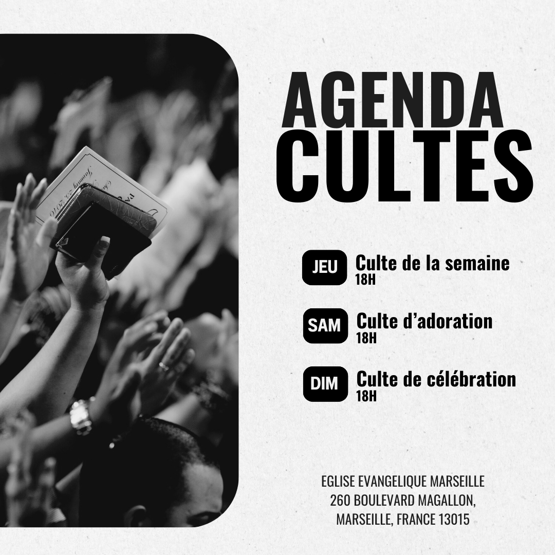 Chaque rassemblement est un moment consacré à la foi, à la communion et à la croissance spirituelle, où nous cherchons à nous rapprocher de Dieu à travers l’adoration, l’enseignement de la Parole et la vie fraternelle.